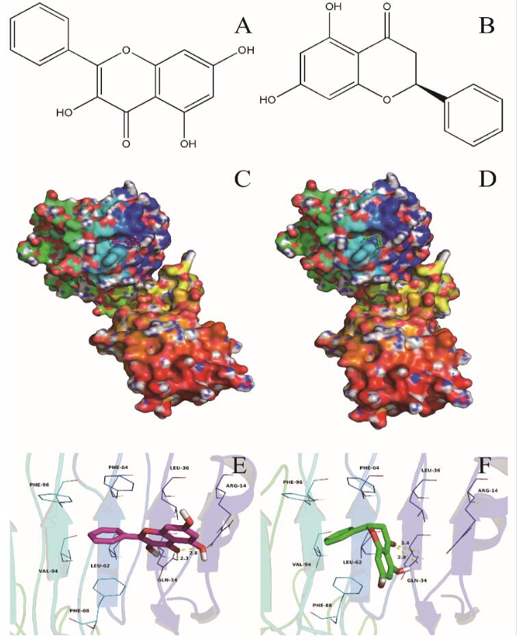 通過HepG2細胞胰島素抵抗模型,發現高良姜素和松屬素調節AKT/mTOR信號通路上的關鍵蛋白,改善HepG2細胞的胰島素抵抗。通過分子對接模擬實驗,確定了高良姜素和松屬素可以與胰島素受體發生結合,從而改變胰島素受體的構像,激發胰島素受體的敏感性,進而激活信號通路,改善胰島素抵抗。本論文為蜂膠產品的深度開發提供了理論依據。